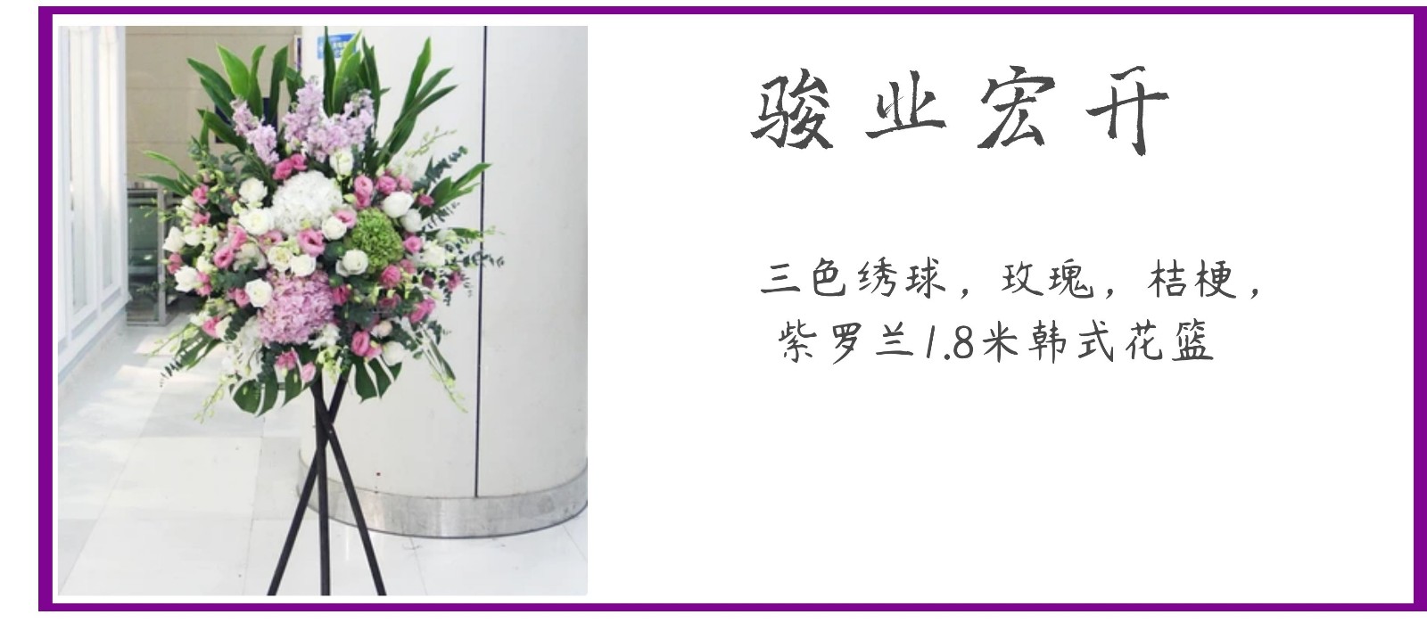 花材:三色绣球,玫瑰,桔梗,紫罗兰1.8米韩式花篮