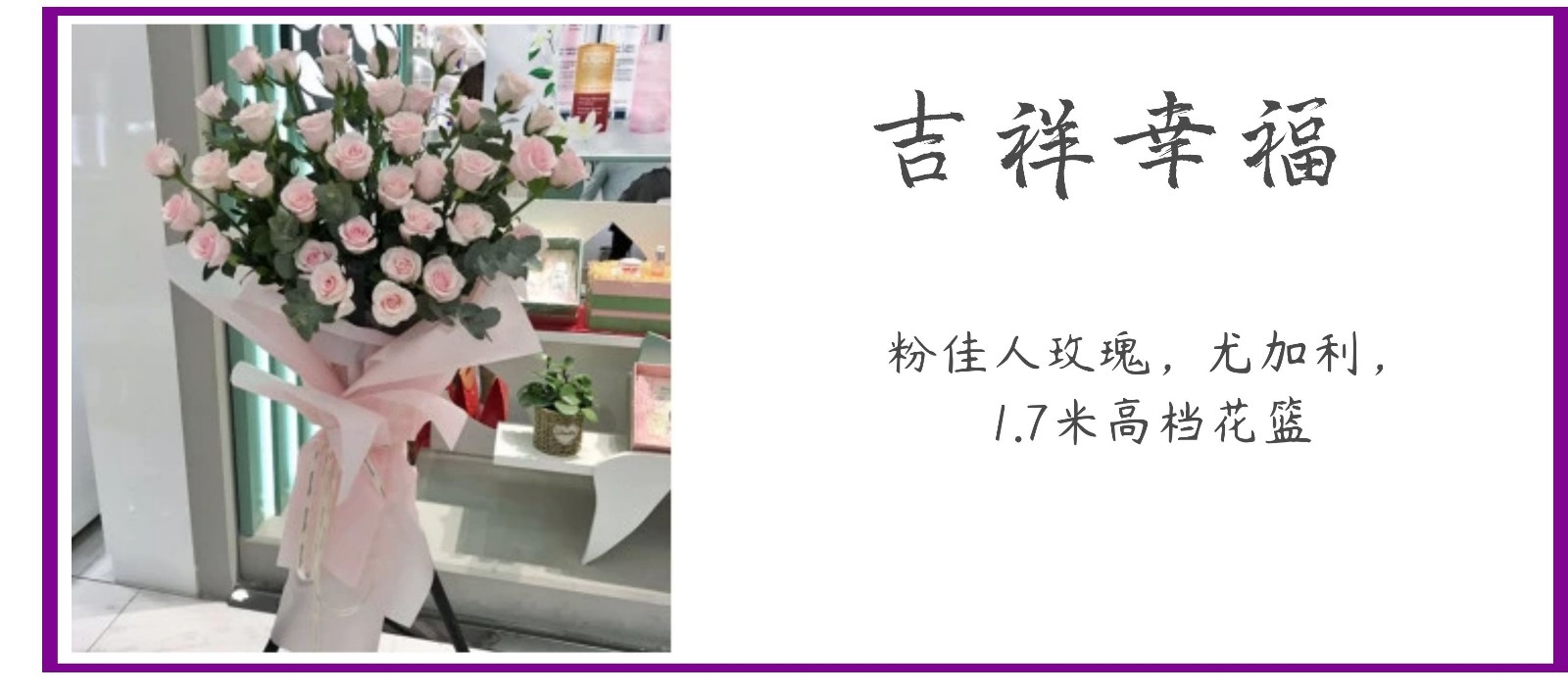 花材:粉佳人玫瑰,尤加利,1.7米高档花篮